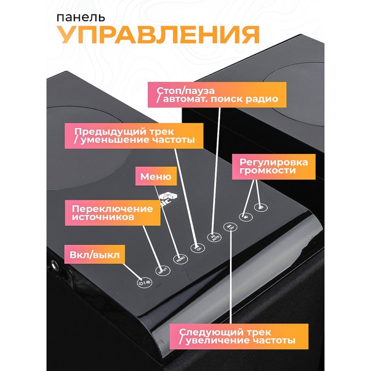 Мощность системы составляет 120 Вт, что обеспечивает чистый и громкий звук в диапазоне от 40 Гц до 20 000 Гц. Чувствительность в 75 дБ гарантирует хорошую передачу звука.