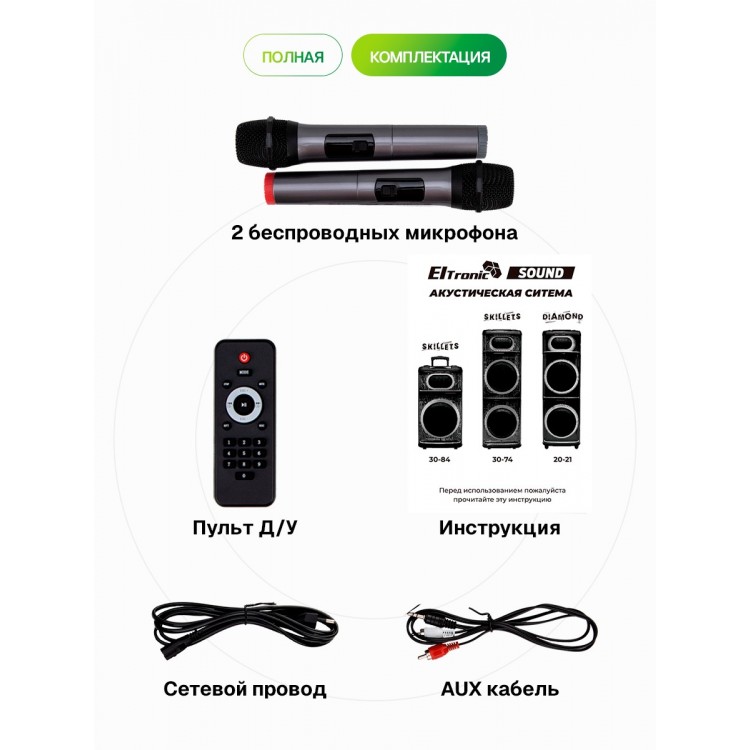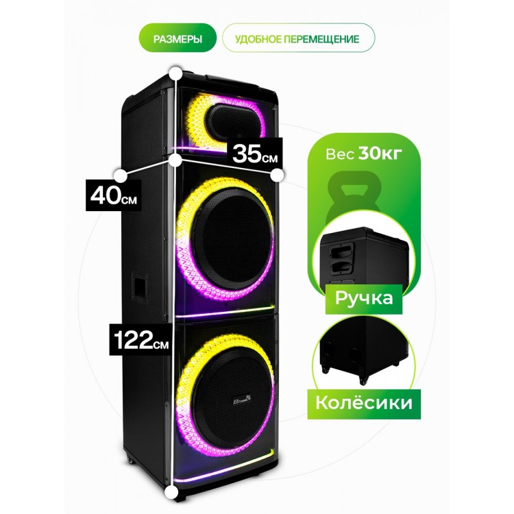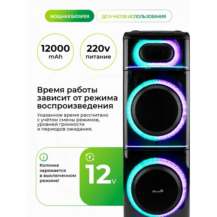 * Многофункциональность. Акустическая система ELTRONIC 12 (20-21) Diamond Box 2500 поддерживает синхронизацию колонок, имеет эквалайзер и другие функции звука.