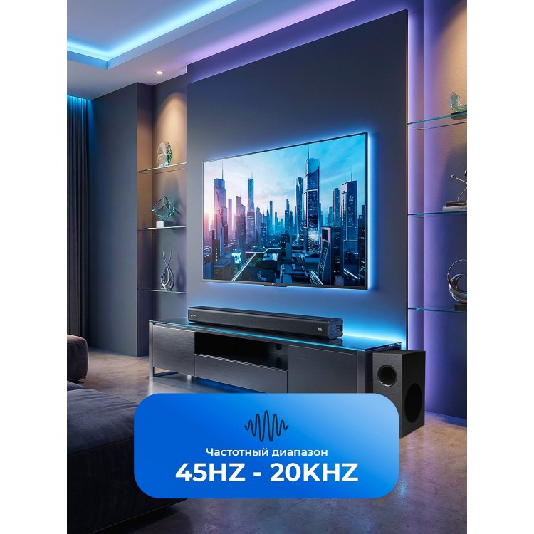 Давно искали бюджетный саундбар. Достав с коробки показался маленьким, но это наверное плюс, тем более звучит он очень хорошо.
