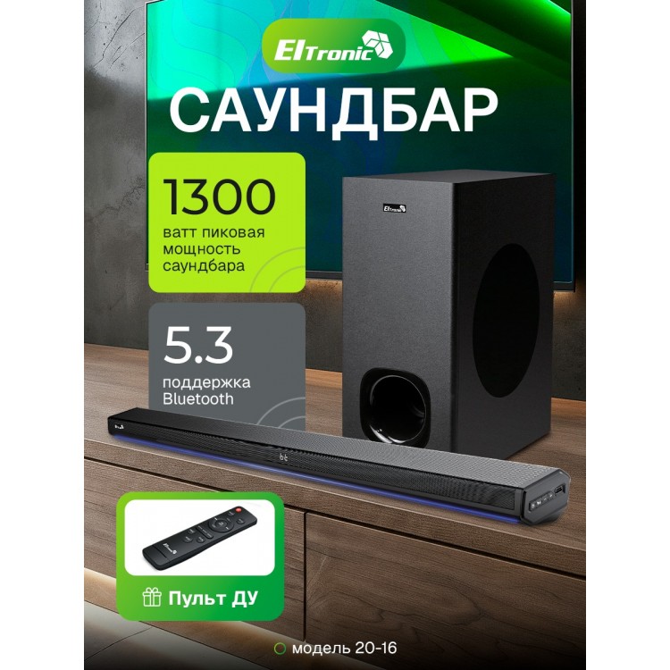 Купите саундбар ELTRONIC SOUNDBAR (20-16) 2.1 в интернет-магазине NicePrice62 в Рязани и оцените высокое качество звука от известного бренда. Не упустите возможность улучшить свой аудиоопыт!