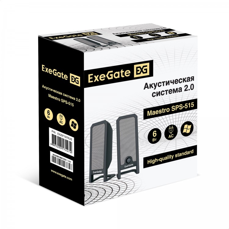 | Название | Акустическая система 2.0 ExeGate Maestro SPS-515 (Активная, питание 220В, 2х3Вт, 30-18000Гц, цвет черный, Color Box) |