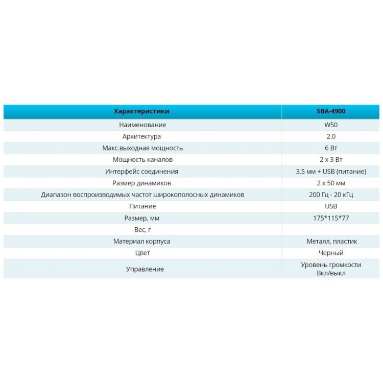 | Название | Акустическая система 2.0 Smartbuy W50, 6Вт (SBA-4900) |