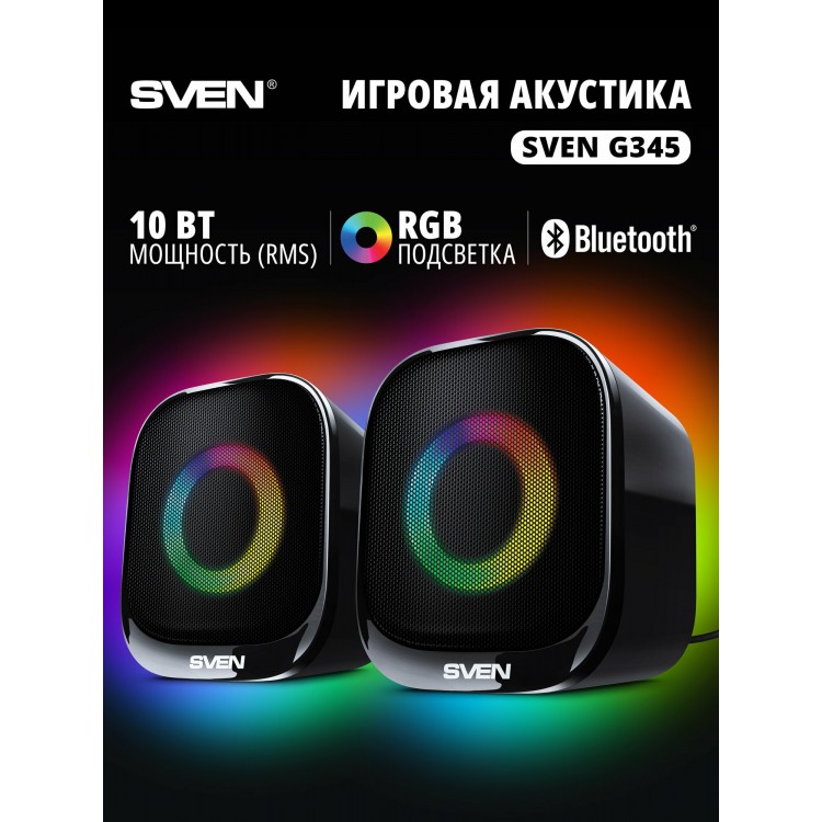 | Название | SVEN G345 Маленькие проводные компьютерные колонки с Bluetooth и RGB подсветкой, 10 Вт |