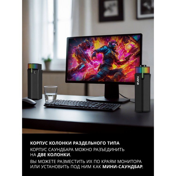 | Название | SVEN SB-G1400 Саундбар мини 2в1 с Bluetooth и RGB-подсветкой, 10 Вт |