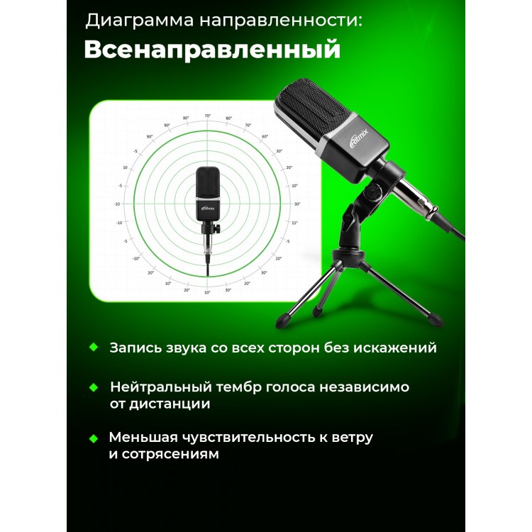 Микрофон просто замечательный, я очень доволен. Компания Ritmix производит лучшие микрофоны.