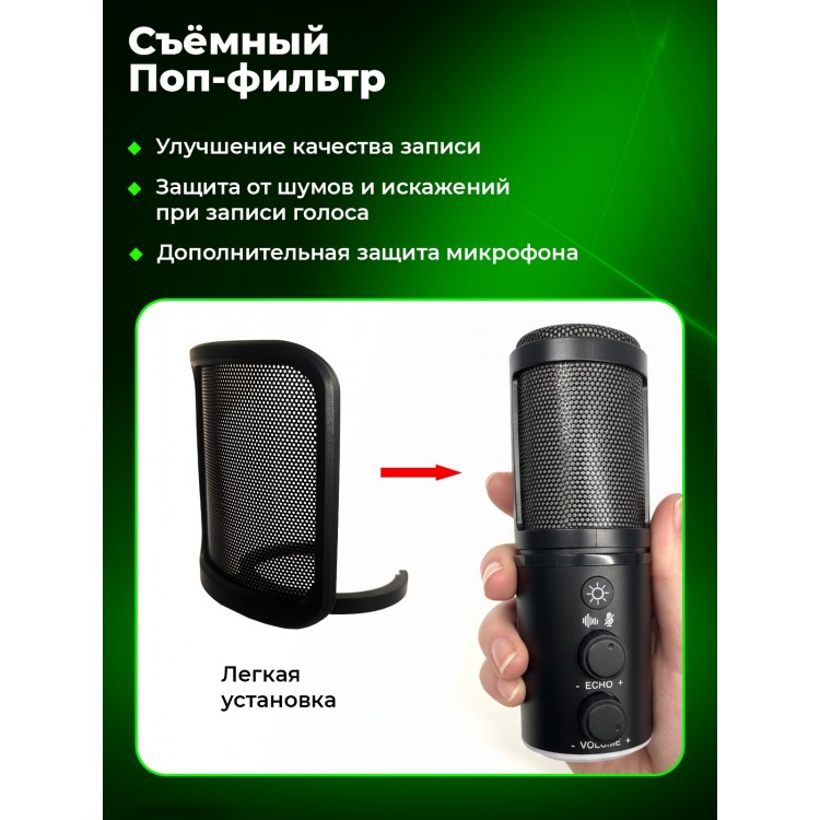 В комплекте с микрофоном вы получите поп-фильтр, подставку с креплением, кабель и руководство пользователя. Не упустите возможность приобрести качественный микрофон по выгодной цене в Рязани!