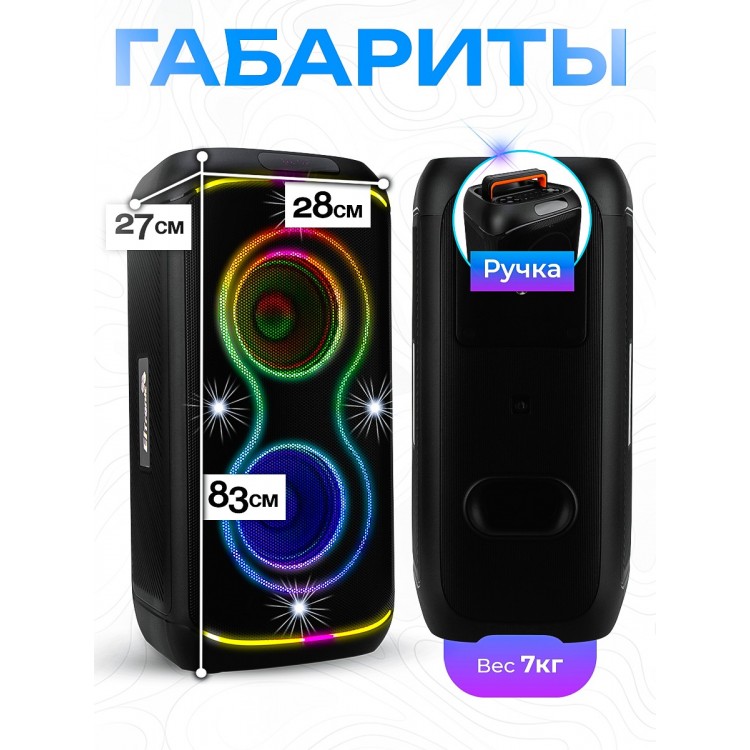 Название Колонка 06" (30-86 DANCE BOX 900) динамик 2шт/6.5" ELTRONIC с TWS; Бренд Eltronic; Вид Моно; Питание Автономное; Управление Кнопочное, пульт ДУ, со смартфона; Минимальная воспроизводимая частота 40 Гц; Максимальная воспроизводимая частота 15000 Гц; Функции звука Синхронизация колонок, эквалайзер; Материал корпуса Пластик; Беспроводные интерфейсы Bluetooth; Разъемы и интерфейсы USB Type-A (для флэшки), вход аудио mini jack 3.5 mm, вход микрофонный - jack 6.3 mm; Тип разъема для зарядки Встроенный кабель; Время автономной работы 4 ч; Емкость аккумулятора 4500 мА·ч; Время зарядки 6; Особенности FM-радио, дисплей, ручка, световые эффекты; Ширина 300 мм; Высота 640 мм; Глубина 300 мм; Вес 7 кг; Габариты транспортной упаковки 33x30x70; Вес в килограммах с учетом упаковки 8; Срок службы 1 г; Цвет черный;