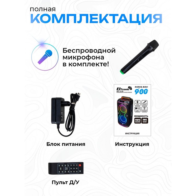 Ищете качественную портативную акустическую систему для вечеринок и мероприятий? ELTRONIC 06 (30-86) DANCE BOX 900 в чёрном цвете — отличный выбор для тех, кто ценит мощный звук и удобство использования.