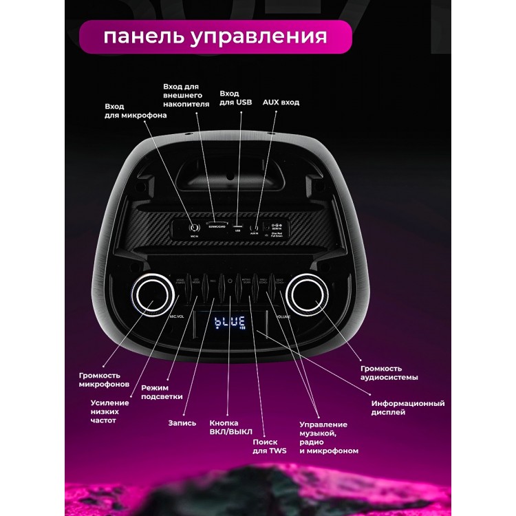 | Функции звука | регулировка ВЧ, регулировка НЧ, синхронизация колонок, эквалайзер |