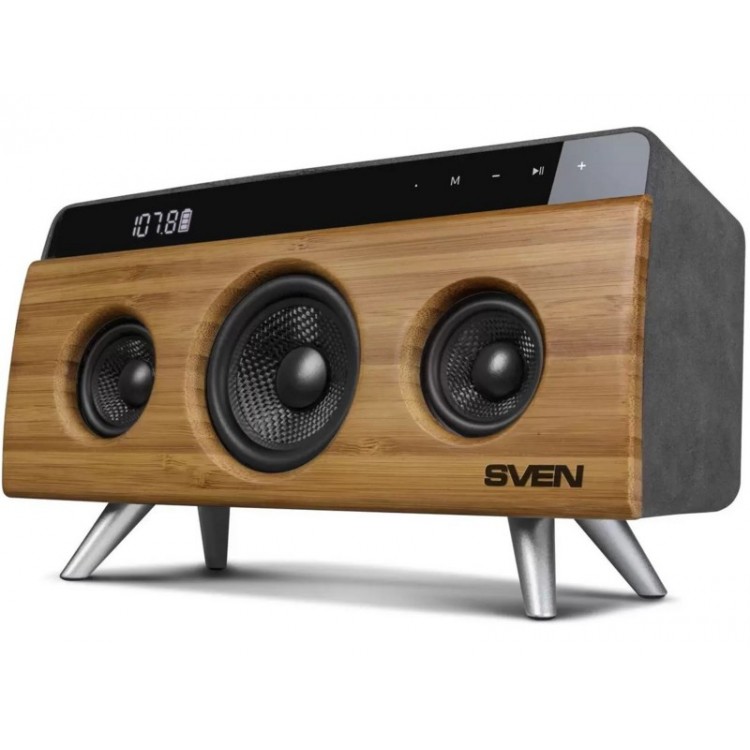 1. Хороший звук, сравнивал с JBL Charge 4. Они играют по разному, но обе играю отлично.2. Брак - у меня плохо работали сенсорные кнопки. Советую у кого будут "засыпать", не сразу реагировать на нажатия - это не колонка такая, а брак. Поменяли без проблем на новую.3. Включение и выключение колонки могли сделать сверху. К примеру ретро переключатель. Было бы куда удобнее, чем лесть в зад колонки. 4. Радио работает отлично, сигнал ловит хорошо, антенна съемная. Из минусов это управление радио. Я так и не понял, можно ли в ручную выбрать станцию. Логика такая: 1. вы включаете сканирование всех станций 2. вы переключаете станции, и они к сожалению нумеруется от 1 до 99. Т.е. когда вы хотите найти определенную волну, то вы не увидите какую волну выбираете. 5. Блютуз работает отлично. 6. Мне кажется могла быть чуть громче. Вывод: ценник ей в 6к, вопросов нет. Ну и как всегда свен радует звуком. Да он не "идеальный", но поверьте, он не хуже JBL колонок. Брал в подарок. Сравнивал с jbl flip 5, charge 4, xtreme 3, hopestar a6, sven-ps650 и сони. По звуку явно лучше hopestar. Остальные +-. Как портативная колонка не годиться. Просто дешевая, стильная колонка. Если хотите колонку интереснее в таком стиле, советую посмотреть в сторону маршала MARSHALL Acton II