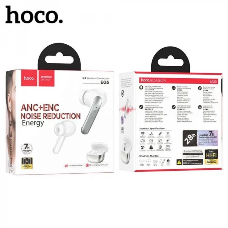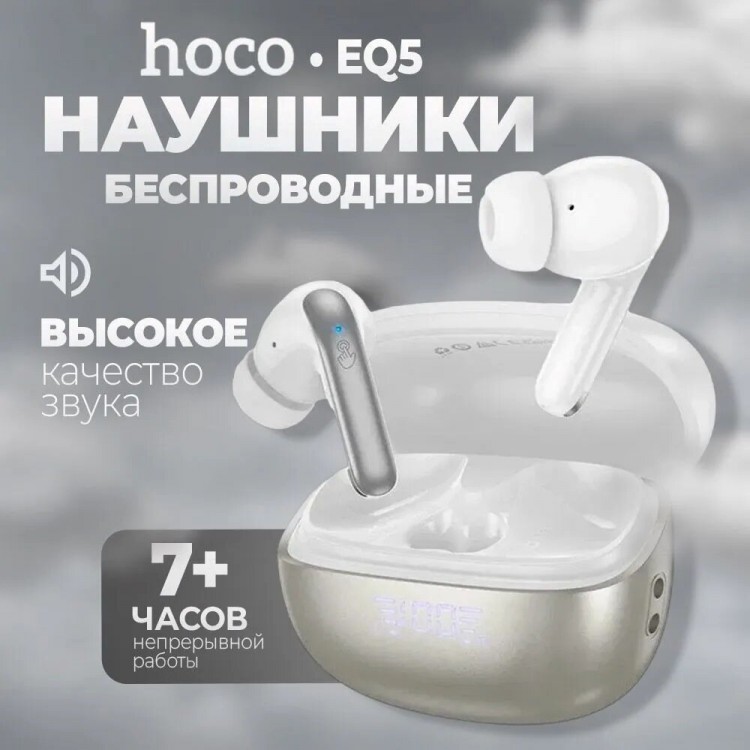 | Название | Наушники беспроводные TWS HOCO EQ5 Energy, bluetooth V5.3, ANC + ENC (Белый) |