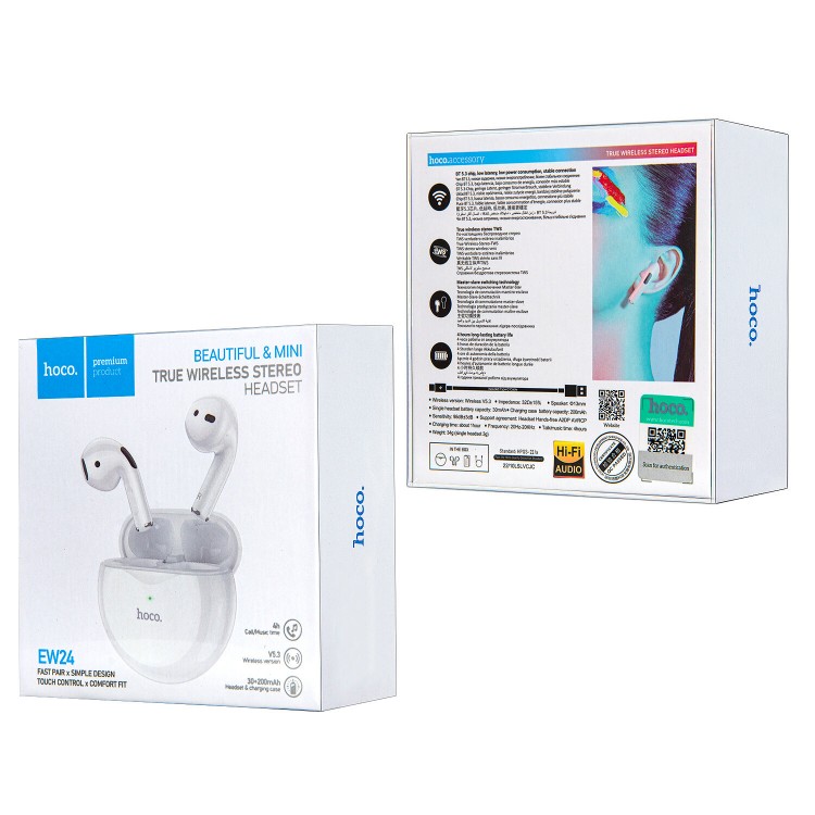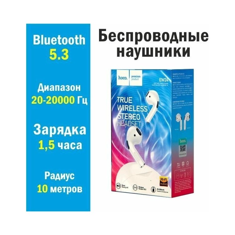 - Выгодная цена. HOCO EW24 — это идеальный выбор для тех, кто ценит высокое качество звука и функциональность по доступной цене.