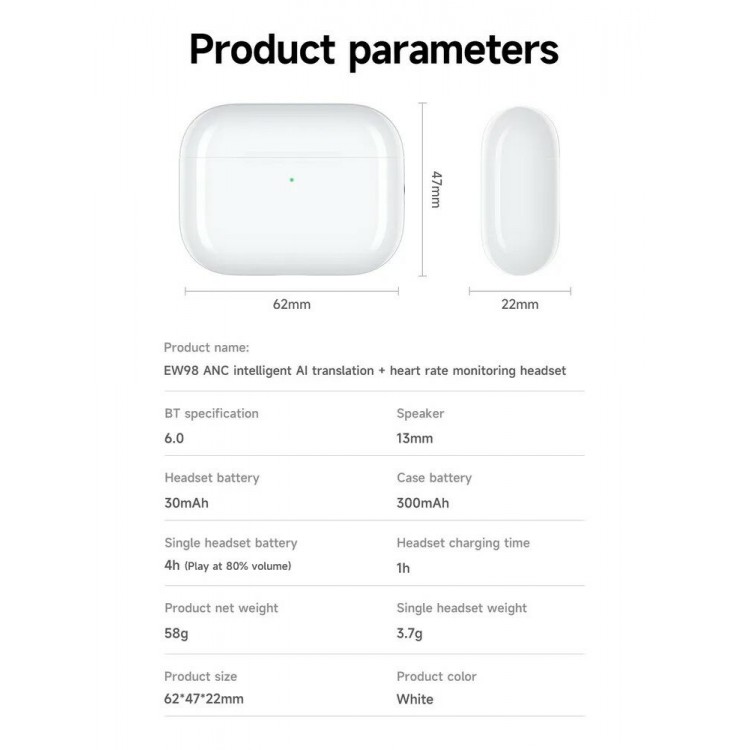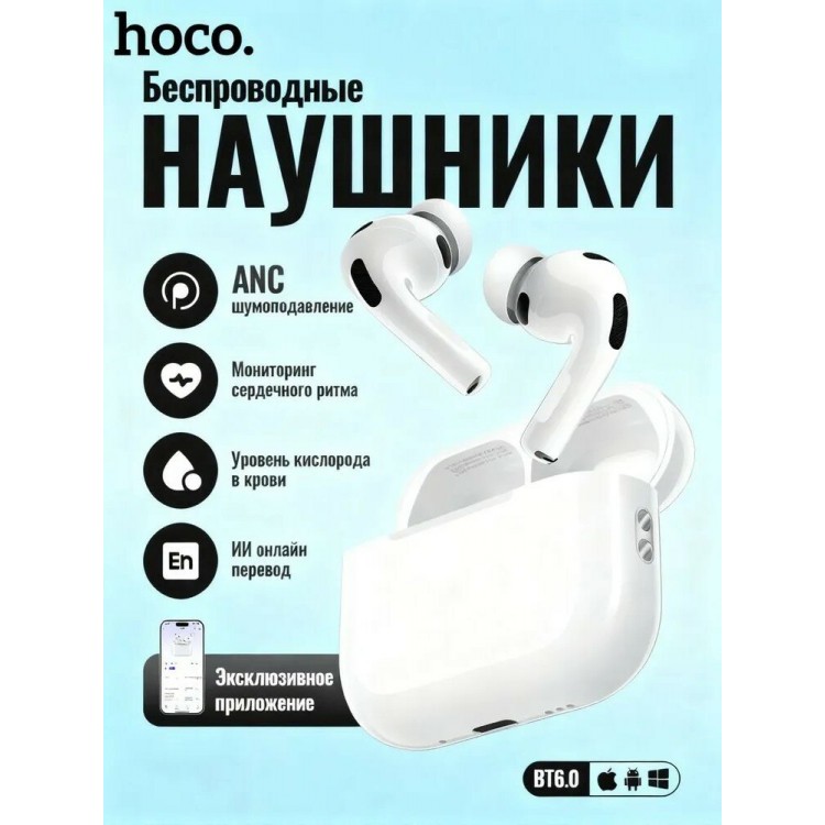 | Название | Наушники беспроводные TWS HOCO EW98 (Al+), bluetooth V6.0, monitoring APP, ANC (Белый) |