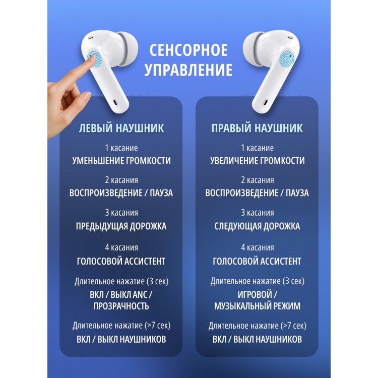 * Стильный дизайн: белый цвет и минималистичный дизайн делают эти наушники отличным дополнением к любому образу.