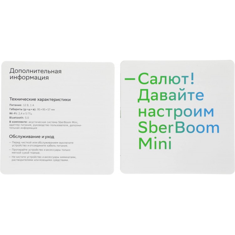 | Комплектация | SberBoom Mini; Адаптер питания; Руководство пользователя; Дополнительная информация |