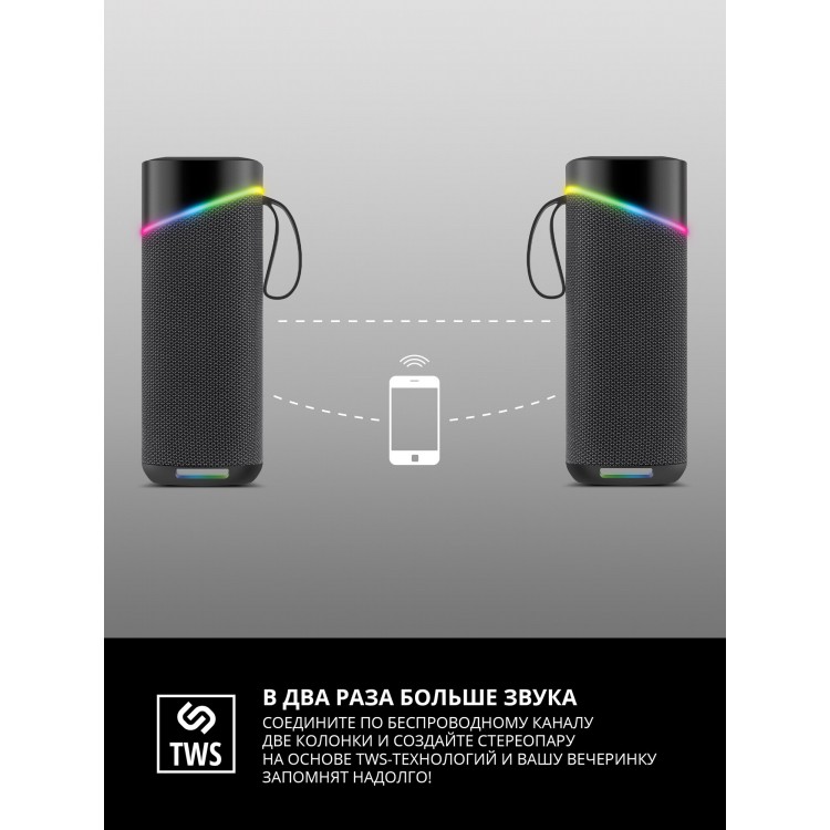 | Название | PS-155 Беспроводная портативная Bluetooth колонка / Переносная акустика (TWS, FM - радио, RGB, USB flash), 10 Вт |