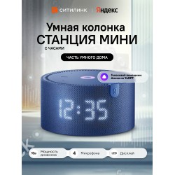 Умная колонка Яндекс Станция Мини (с часами) - с Алисой на YandexGPT (синий сапфир)