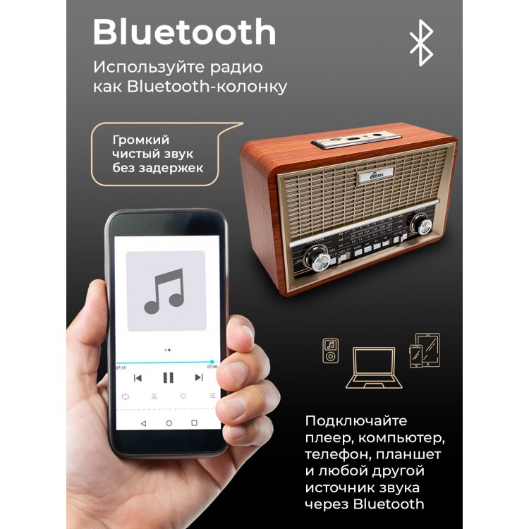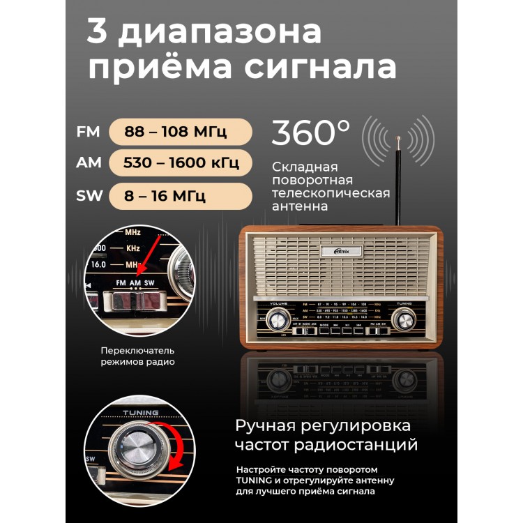 Отличный многофункциональный радиоприёмник! Громкость что надо! Радио работает чисто, без помех! Читает флешку, подключается по ВТ!