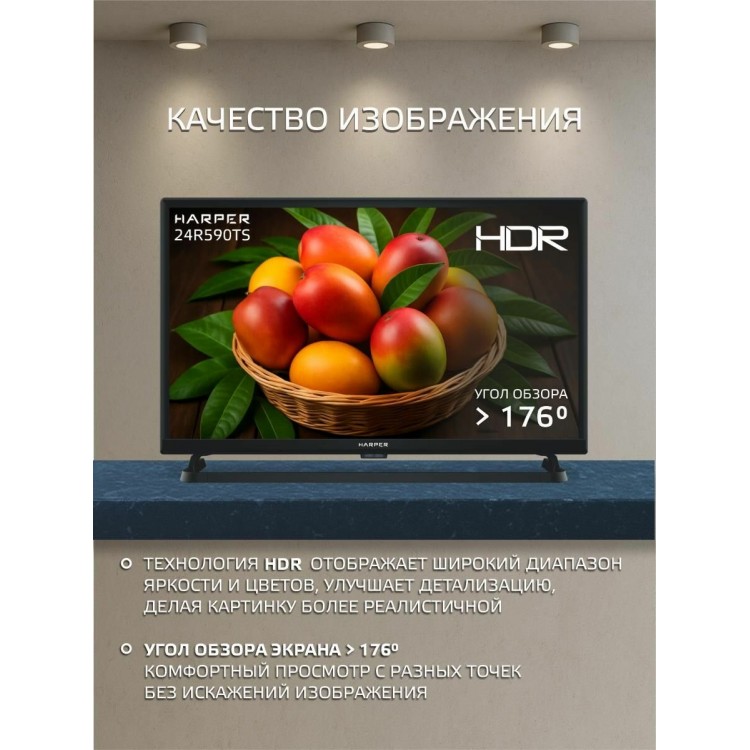 Ищете компактный и функциональный телевизор по доступной цене? Тогда модель HARPER 24R590TS — это то, что вам нужно!