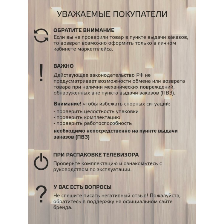 Телевизор хороший. Современный. Есть подключение к приставке, к интернету и с обычной антенной работает хорошо. Приехал качественно упакован с документами. Пользуемся уже 6 месяцев. Нареканий нет.