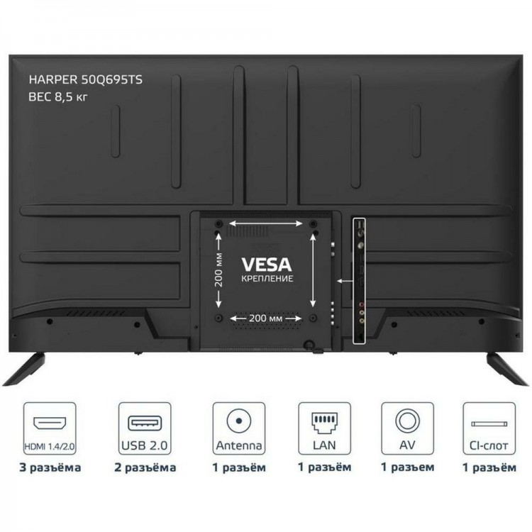 | Название | Телевизор Harper 50Q695TS / 4K UHD 3840x2160 / QLED / HDR / диагональ 50 дюймов / 60 Гц, черный |