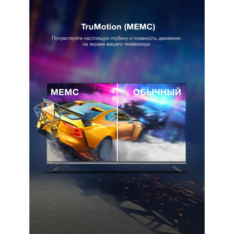 Модель с диагональю 65 дюймов и разрешением 4K UHD обеспечивает потрясающее качество изображения. Яркие и насыщенные цвета, чёткая детализация — всё это вы получите с телевизором Hyundai H-LED65BU7100.