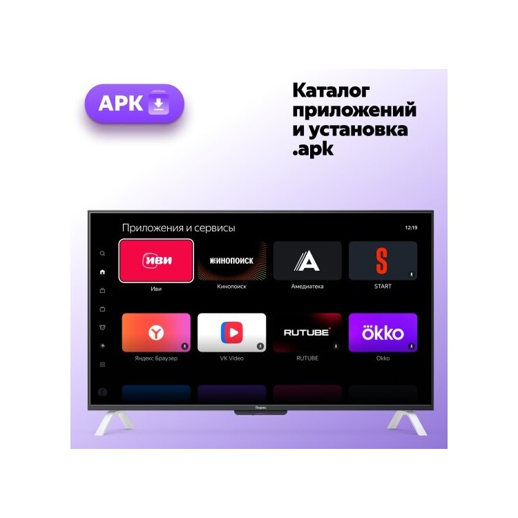 Отличный телевизор для такой цены. Приобретал для работы в системе "Умного дома Яндекс", встал как родной. Порадовала возможность голосового управления ТВ каналами. Есть возможность подключать приложения (VPN ;-) через *.apk, устанавливаются и работают без проблем.