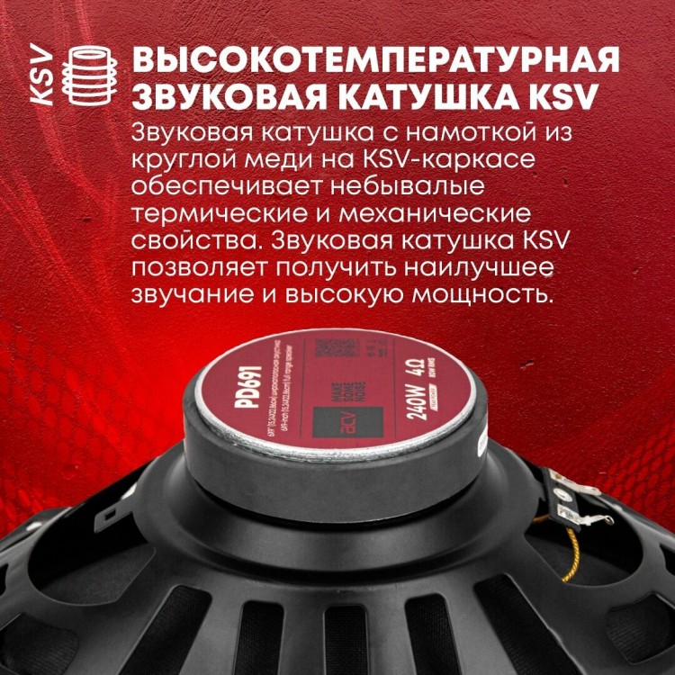 С номинальной мощностью 80 Вт и максимальной мощностью 240 Вт, динамики ACV PD-691 способны обеспечить яркое и насыщенное звучание. Чувствительность 91 дБ гарантирует хорошую передачу звука даже при низкой громкости.