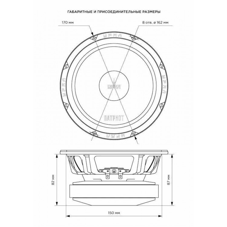 | Название | Акустика ПАТРИОТ АС-ПТ165.2, для авто, 1 полоса, 4 Ом, 300-600 Вт, 16.5 см, 98.5 дБ |