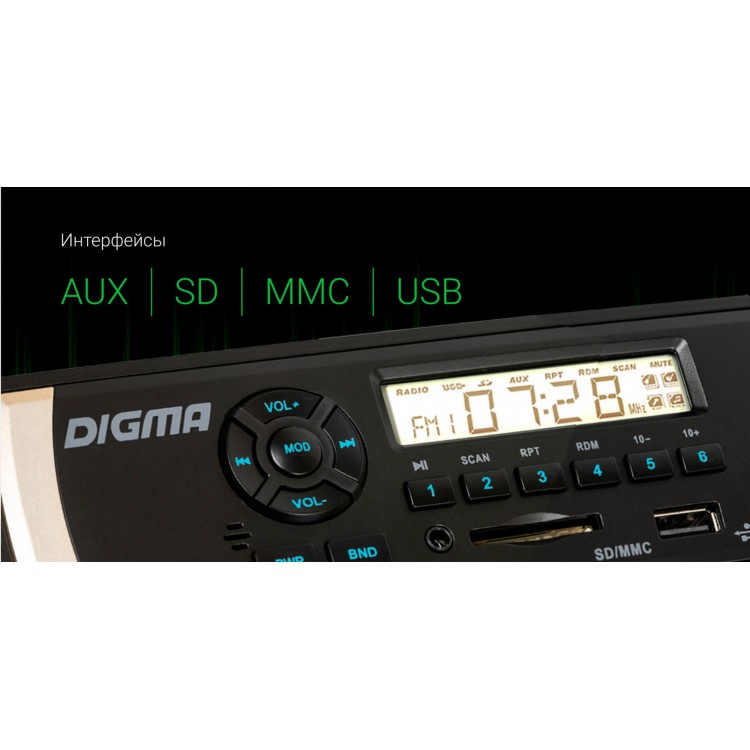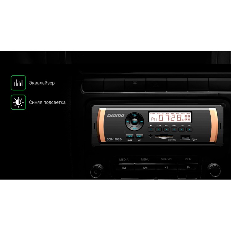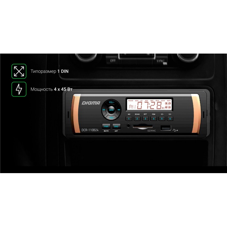 Автомагнитола DIGMA DCR-110B24 (черный)
