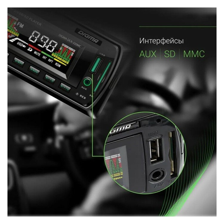 Пластик на кнопках хиленький, но должен отработать мне верой и правдой. Мы тут за другим. По подключению все стандартно: юсб, карта памяти, аукс. Жаль, что блютуза нет, это нужная вещь. Никто не отменял радио, может сохранить до 18 станций в памяти. Неплохо. Когда работает, светится, горит весь ярко, настроение добавляет. По подключение проблем не возникло.