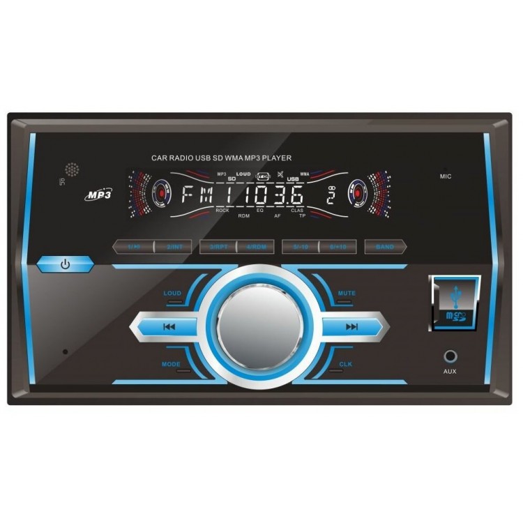 Эта автомагнитола позволит вам наслаждаться качественным звуком в дороге. Вы сможете слушать любимые радиостанции или музыку с USB-накопителей, а также подключаться к телефону через AUX. Устройство также имеет многоцветный дисплей, часы, поддержку SD и эквалайзер, который позволяет настроить звук по вашему вкусу.