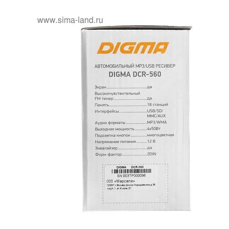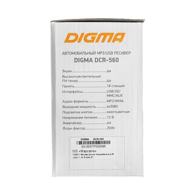 | Подробная комплектация | Автомагнитола Digma DCR-560 документациямонтажный комплект |