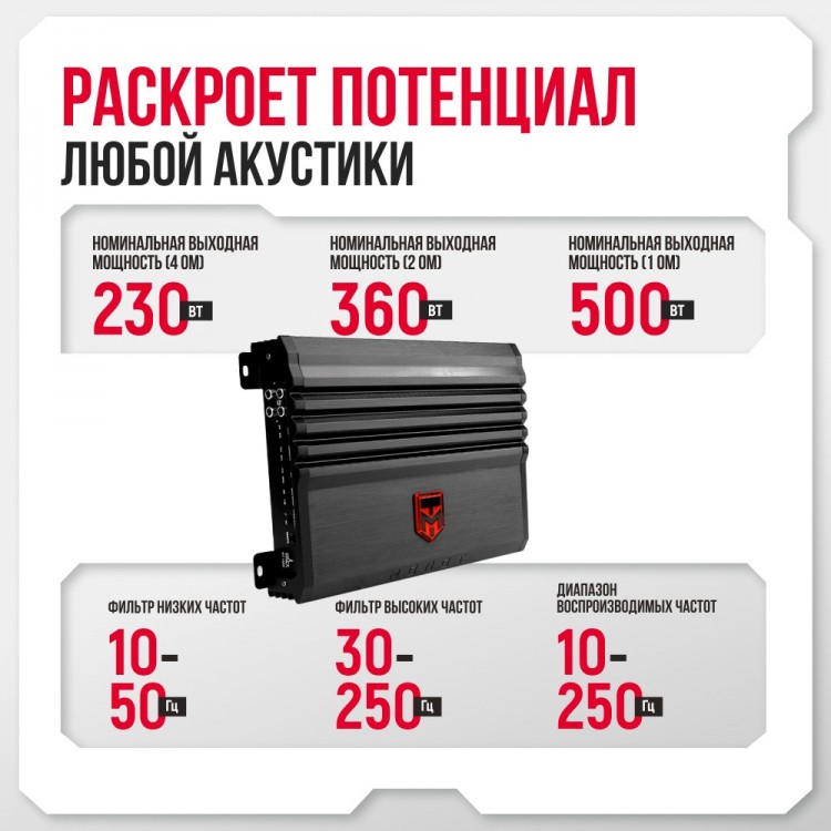 Усилитель не дорогой это его главный плюс, по строению платы это копия кикс sp1.600d но тот на тыщу дороже. Качает саб на 300вт в зя на 3/4 гейна. есть регулировки среза как снизу с 20гц так и по верху от 500Гц, также регулировка фазы сигнала 0-180.