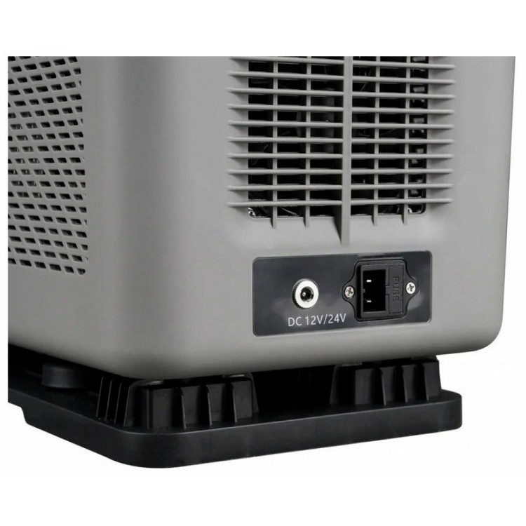 Материал корпуса — пластик и экокожа, что обеспечивает долговечность и удобство использования. Холодильник имеет одну камеру и оснащён дополнительными функциями: защита от разряда аккумулятора, память настроек и индикация ошибок.