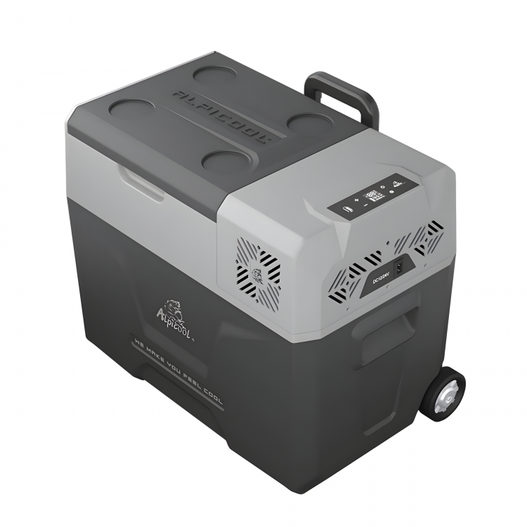 вместительный, работает как от 220 так и от 12в. хорошо морозит. есть колеса, что позволяет его катить а не тащить.