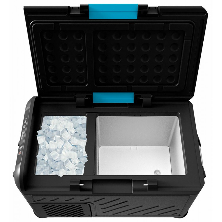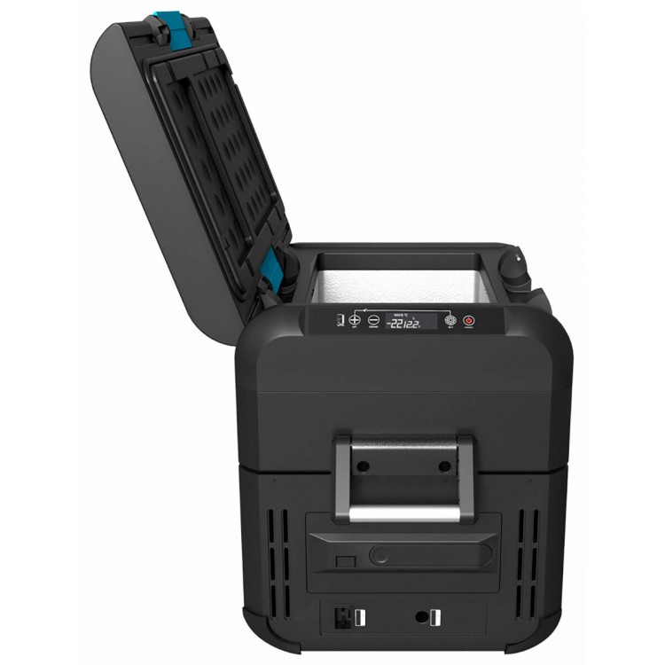 Отличный холодильник. Тихий.С +24 на +4 выходит минут за 15. При +24 и +4 внутри работает 25 минут ожидания, 5 минут работы. В ожидании 1 ватт, при работе 45 ватт. С зарядной станцией 400Вт/ч отпахал бех проблем 2 суток и еще осталось