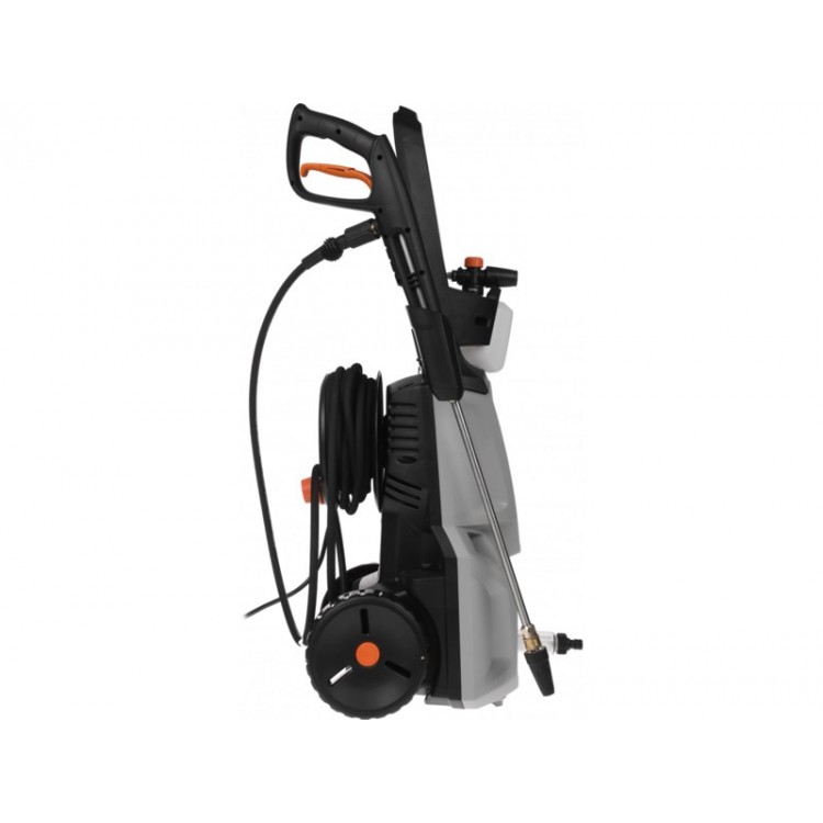 Шланг 4 м , явно не достаточно для мытья автомобиля. Хотя бы надо 6м. Давление слабое для мытья автомобиля, хоть как старайся, всё равно остаётся матово грязный слой грязи. Вводной патрубок с фильтром могли бы сделать и металла, а то очень хлипкий, даже гибким шлангом , если переставлять , можно сломать.