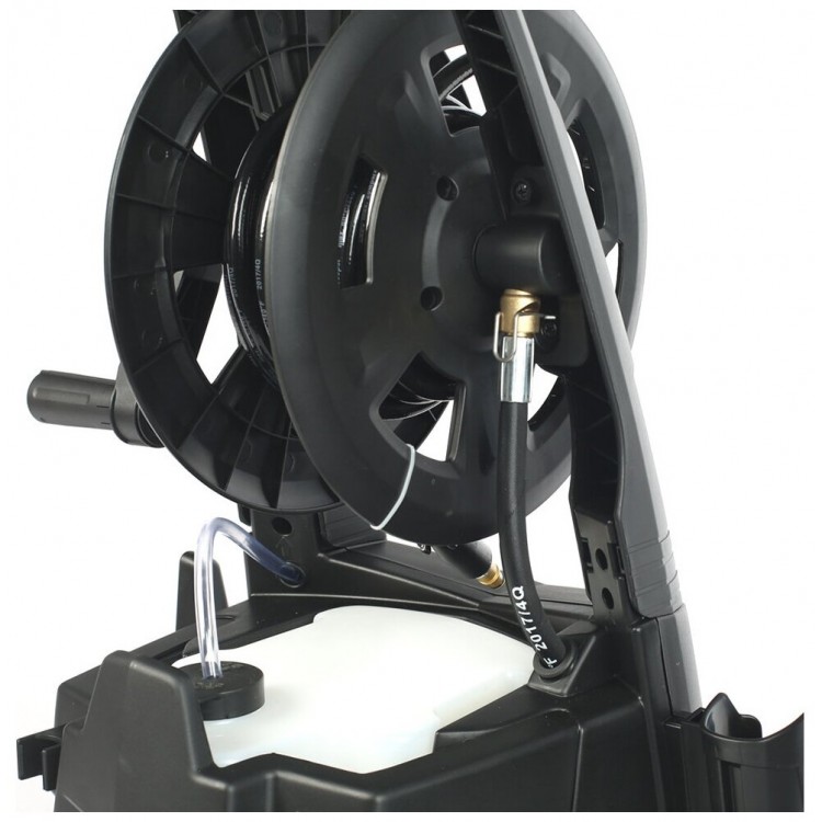 | Конструктивные особенности | Бак для воды, встроенный бак для моющего средства, отсек для хранения принадлежностей, ручка для переноски, транспортировочные колеса |