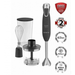 Погружной тип отличается длинной ручкой и множеством насадок, от разнообразия которых зависит функционал и цена прибора. Главные преимущества этой техники — лёгкость и мобильность. Благодаря им вы можете сделать суп-пюре прямо в кастрюльке или вспенить молоко непосредственно в чашке.