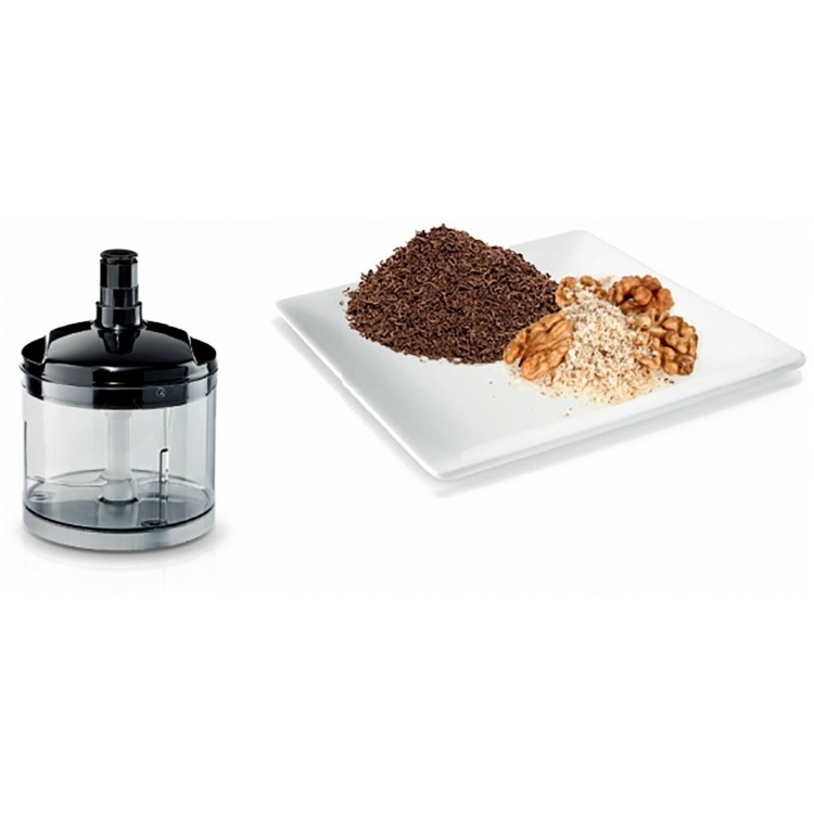 | Дополнительная информация | низкий уровень шума и вибрации при работе мотора; эргономичная ручка с мягким покрытием Soft-touch; нож QuattroBlade с четырьмя острыми лезвиями, функция AntiSplash предотвращает брызги; мерный стакан с крышкой и измельчитель (кроме крышки измельчителя) пригодны для мытья в посудомоечной машине; ножи из закаленной нержавеющей стали |
