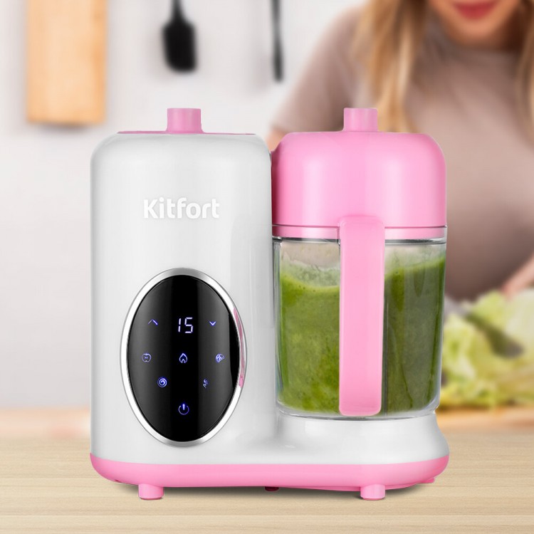 Блендер-пароварка Kitfort КТ-2326-1 (белый/розовый)