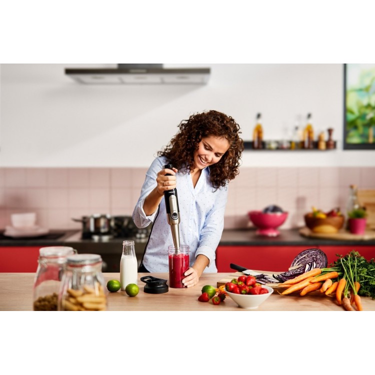 взяла блендер на замену блендера этой же марки, который проработал 14 лет. основное требование было : полностью металлическая ножка и мощность не менее 700вт. кнопка регулировки скорости мне пока не удобна, надеюсь привыкнуколичество и качество насадок для шинковки устраиваетконечно, отсутствие какого-либо нескользящего кольца на стаканы-это минус в общем, блендер рекомендую.