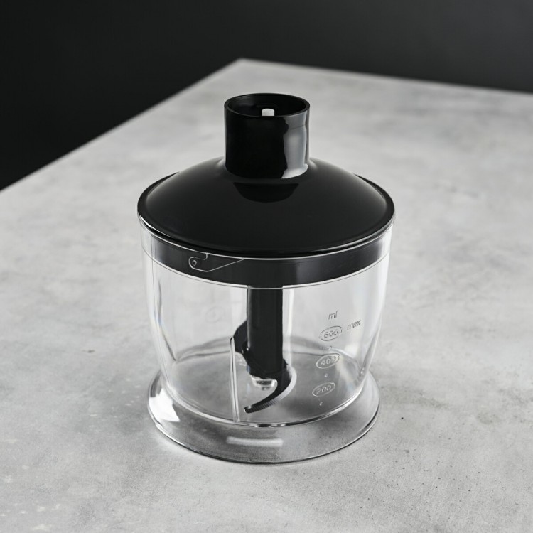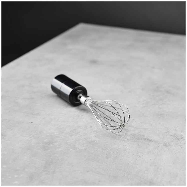 В комплект блендера входят насадки: венчик для взбивания и измельчитель объёмом 0,6 литра. Измельчитель позволяет быстро и легко нарезать овощи, фрукты, зелень, а также мясо и сыр. Венчик подойдёт для взбивания белков, сливок или крема.