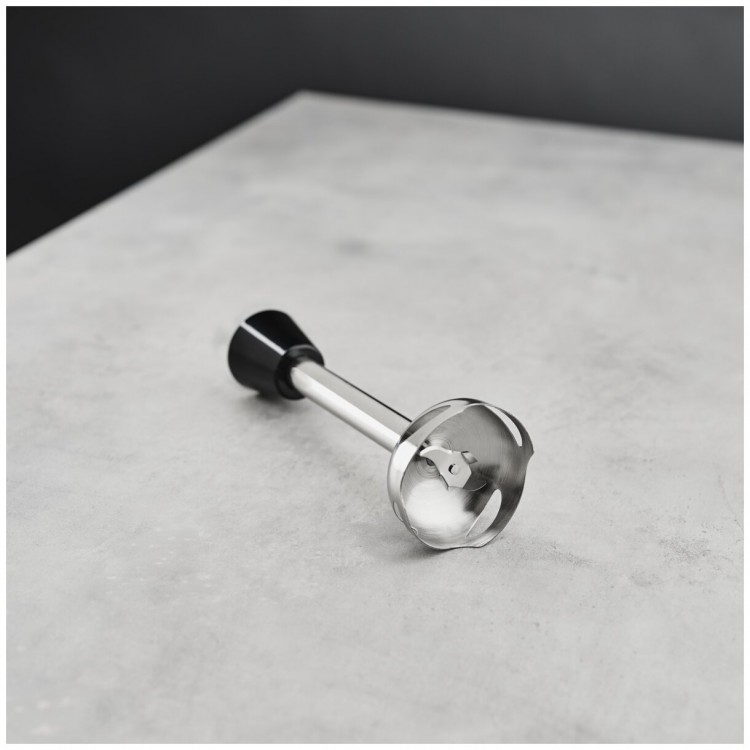 Корпус и погружная часть блендера выполнены из металла, что обеспечивает его долговечность и прочность. Отсек для хранения шнура и петля для подвешивания гарантируют удобство использования и хранения блендера.