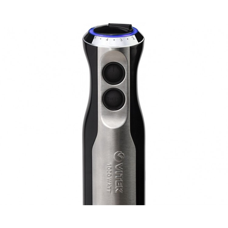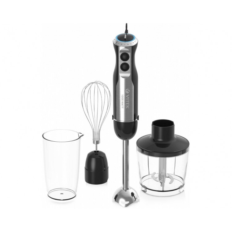 Название Погружной блендер VITEK VT-8543; Бренд VITEK; Мощность 1000 Вт; Материал чаши Нет; Гарантийный срок 12 мес; Цвет белый/серебристый;