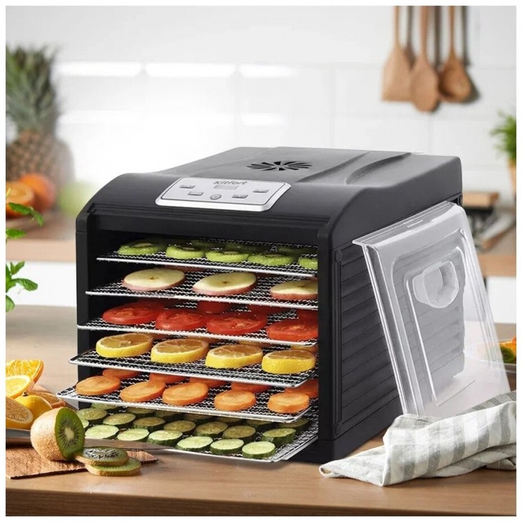 Брал сушилку, чтобы жена вялила помидоры не в духовке. Когда она это делала в духовке, то во-первых вмещалось не так уж и много сырого продукта из-за того, что в духовке всего лишь два поддона, а во-вторых на кухню было не войти из-за того что духовка прогревала еще и воздух в помещении. Попробовали сушилку Kitfort и пока ни разу не пожалели о потраченных на нее деньгах. В работе она практически бесшумная (легкий шелест вентилятора не считаю за шум), окружающий воздух заметно не нагревается. Хоть сезон томатов почти прошел, но сушку не убираем, планируем попробовать ее на фруктах.