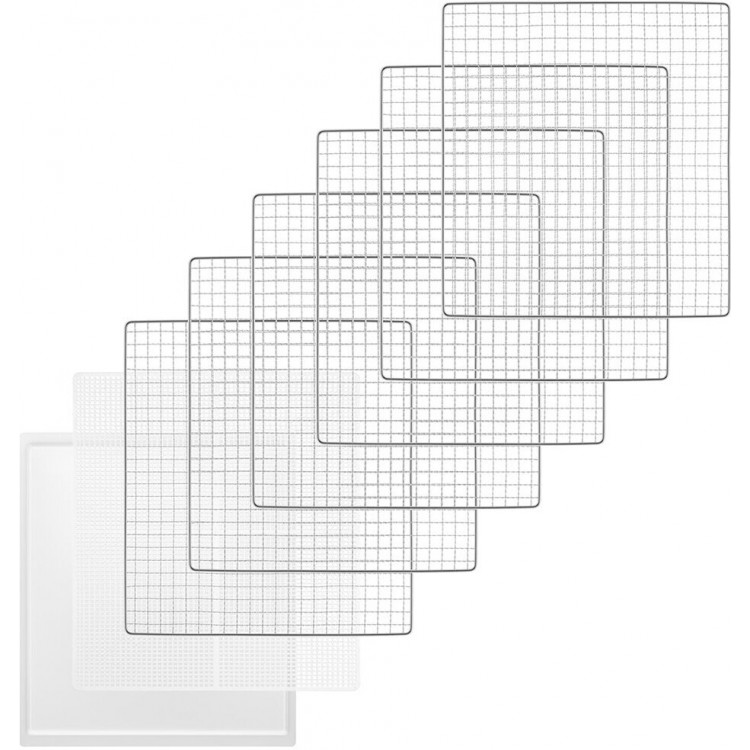 В комплекте 6 решёток из нержавейки, 6 пластиковых решёток для зелени и ягод и 6 поддонов для пастилы.