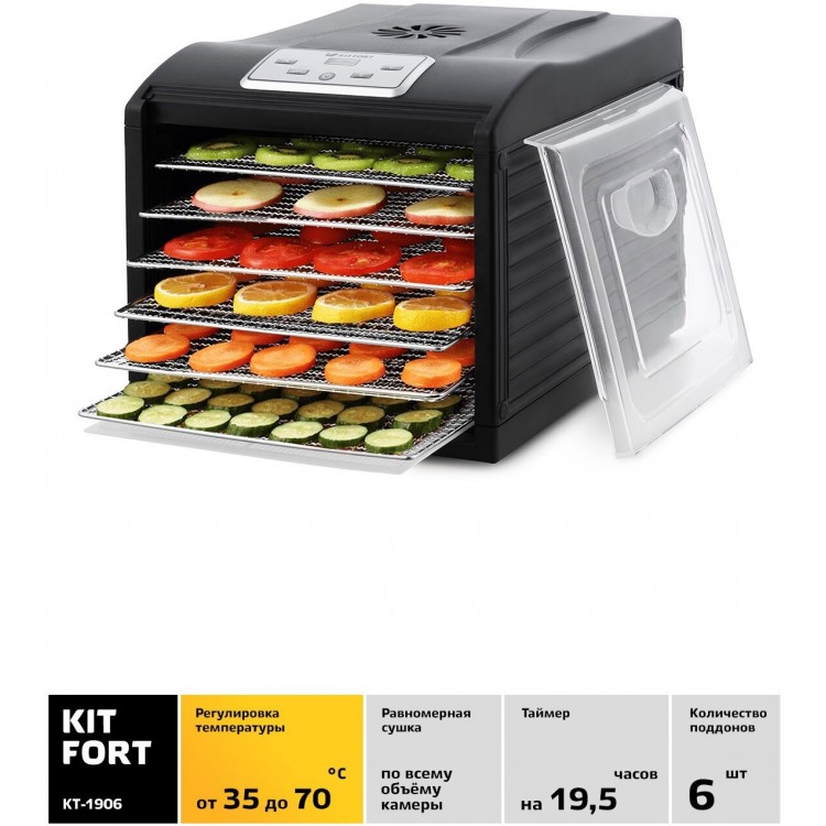 Полазив по рынку остановился на модели Kitfort KT-1906. По всем параметрам оптимальное решение для меня. За два месяца эксплуатации устройства только положительный опыт. Сушил пока только помидоры - сливки и яблоки - антоновку.