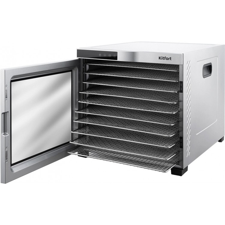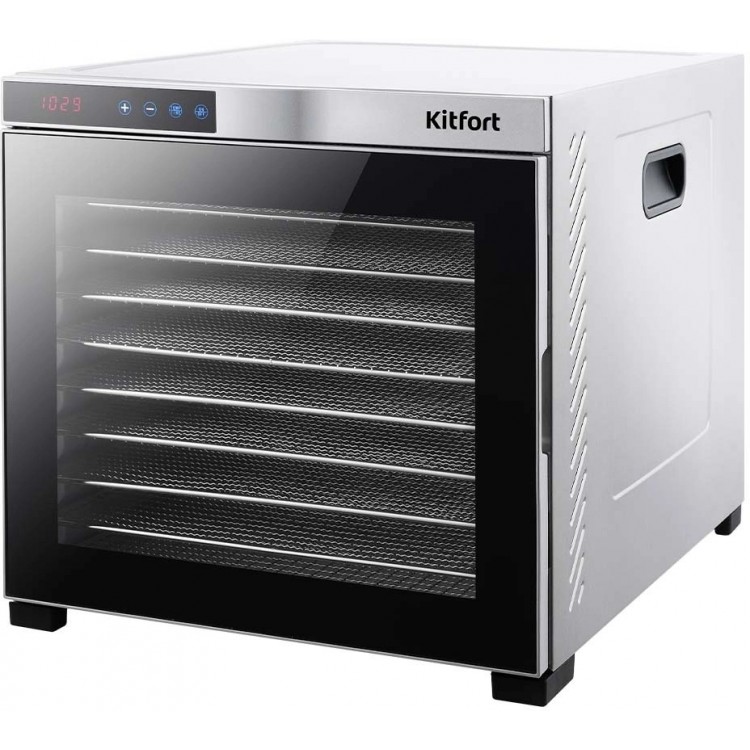 Долго выбирала,понравился дизайн сушилки, корпус металлический, дверь стекло в металлическом корпусе, плотные магниты на двери, очень добротные металлические полки, на каждую сеточка пластиковая и конечно же поддоны для пастилы, сушит быстро. Меню простое понятное, сушилка просто бомба,ни разу не пожалела, что выбрала именно эту модель и этого производителя,в комплекте есть все что нужно,10 металлических сеток,10 пластиковых сеток и 10 поддонов,уже пересушили почти все что можно,отличный помощник по хозяйству,кто сомневается,не стоит этого делать,отбивается на раз,рекомендую к покупке!довольна очень! Первые партии чипсов уже готовы, сушеная грудка, сушеные колбаски, особенно рада, что не стала экономить и не купила модель подешевле с пластиковым корпусом эта полностью из нержавейки. Отличная сушилка!!! Качество на высоте,комплект полный , как заявлено в описании.Большой объём, очень лёгкое управление,работает тихо. Сушилку Kitfort KT-1910 рекомендую к покупке.